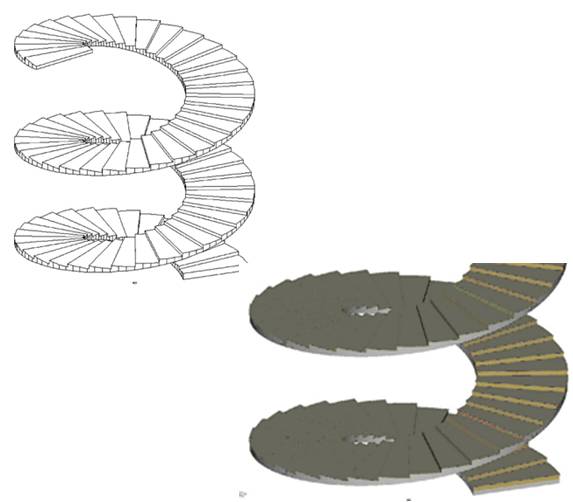 Build a complete circular stair in AutoCAD, including fancy handrails and tread finishes. 3D Helical Stair is available for metric and imperial units.