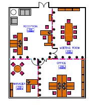 By picking 2 points, or 1 point and a distance, glazed or solid modular partitions can be drawn as fast as you draw a line.